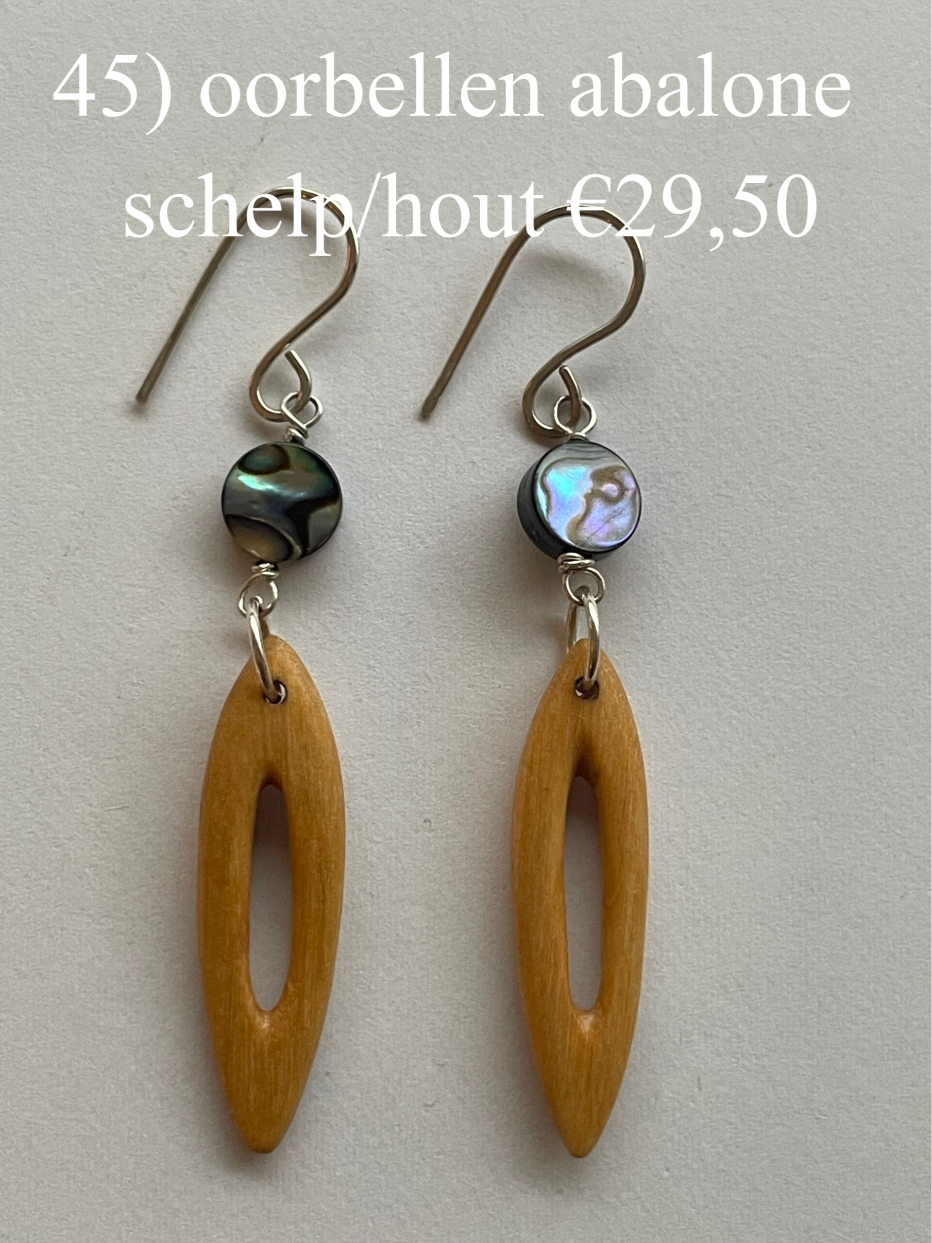 45) Oorbellen abalone schelp met hout €29,50